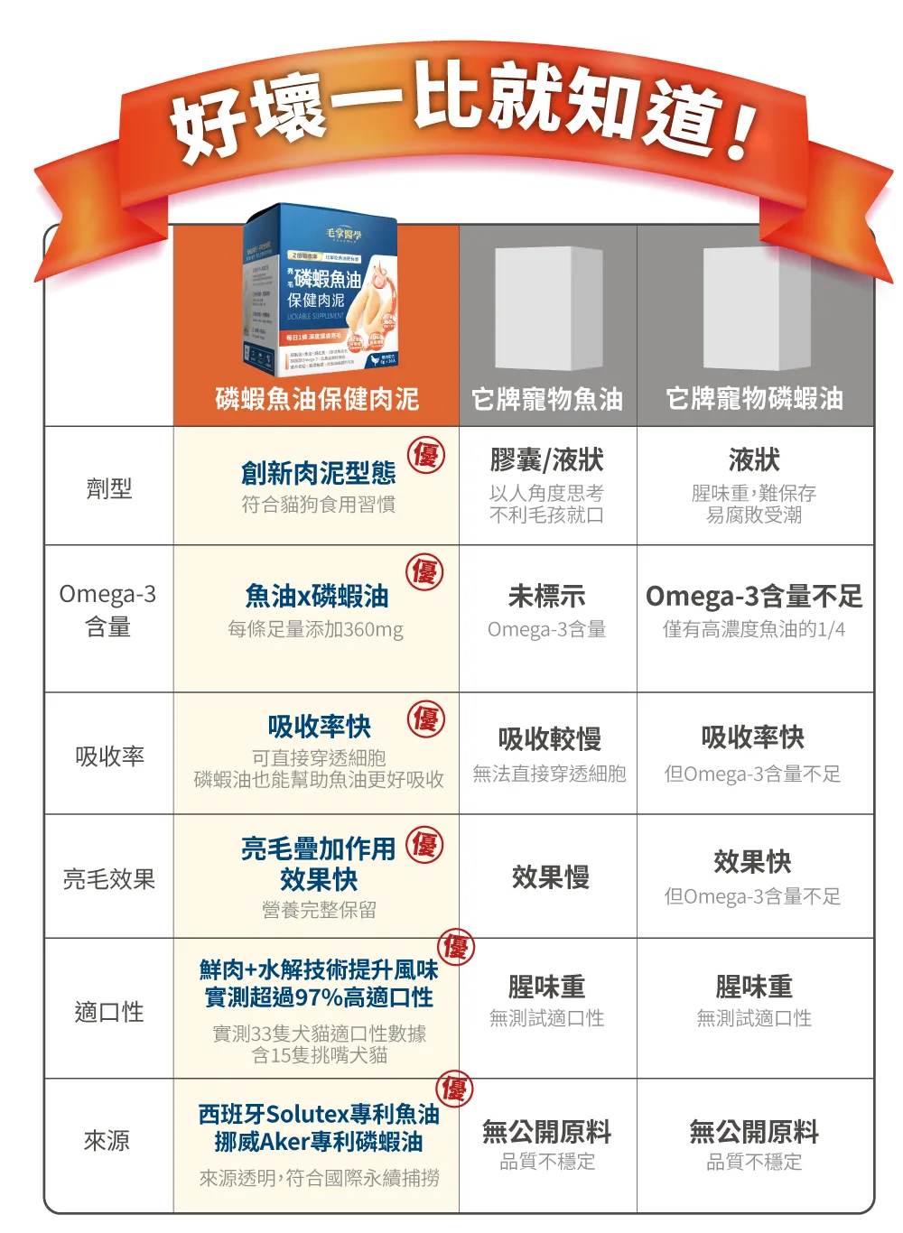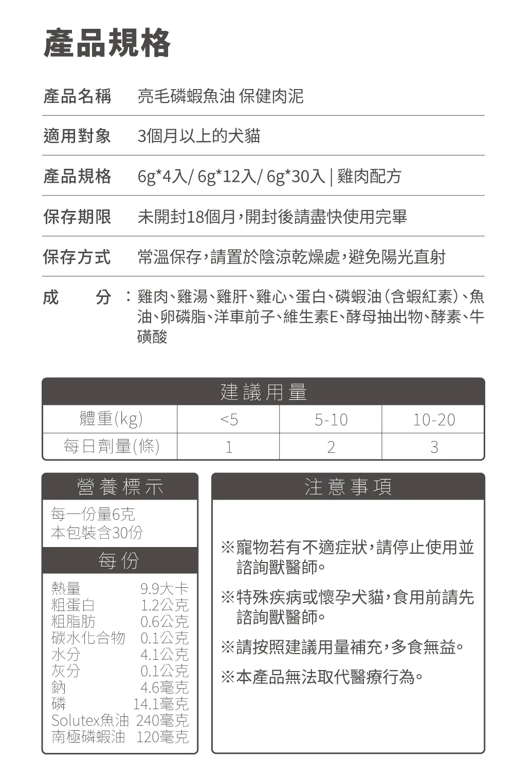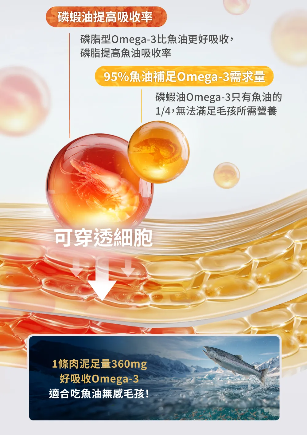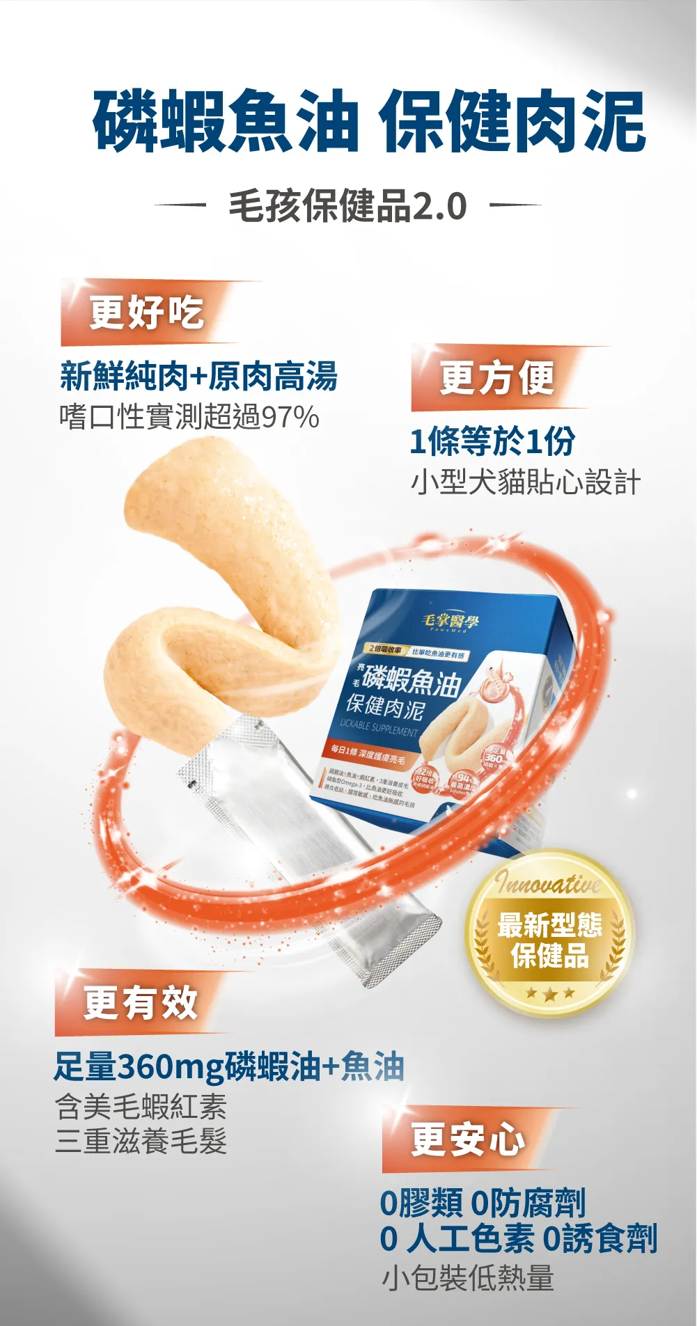 ☑ 1條肉泥=360mg磷蝦魚油