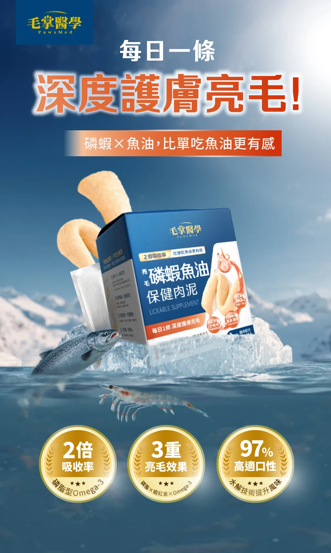 毛掌醫學PawsMed 爆毛神器!亮毛磷蝦魚油 保健肉泥 | 犬貓用 [星部瑪]
